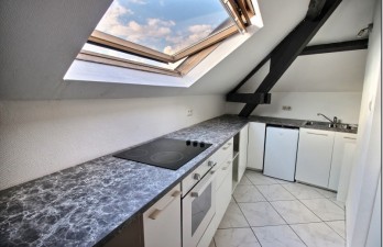 - Chambre à coucher: 21 m² Kot comprenant cuisine équipée, séjour, chambre et salle de douches avec WC
