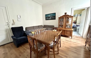 L'appartement est au 1er étage de l'immeuble et se compose d'un séjour de 20 m2, une cuisine équipée de 12 m2, deux chambres à coucher de 18 et 10 m2, une salle de douches de 3 m2, un WC individuel, un débarras à l'entresol de 2 m2 et un balcon en façade à rue. Ce bien offre également une cave en sous-sol. Appartement actuellement loué à 750 /mois. Châssis double vitrage en PVC blanc. Chauffage individuel au gaz. Installation électrique conforme ! PEB avec mention F - 342 kWhEP/m2/an ! RU disponibles. Etat : bon/à rafraichir. Dossier complet disponible sur demande. Affaire à ne surtout pas manquer !!! Idéal pour un premier investissement. Visites et renseignements avec Maria au 0484/824 566. Tous nos biens sont sur www.ergenimmobilier.be